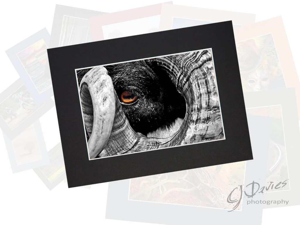 A black and white image with a  spot of colour for the eye.