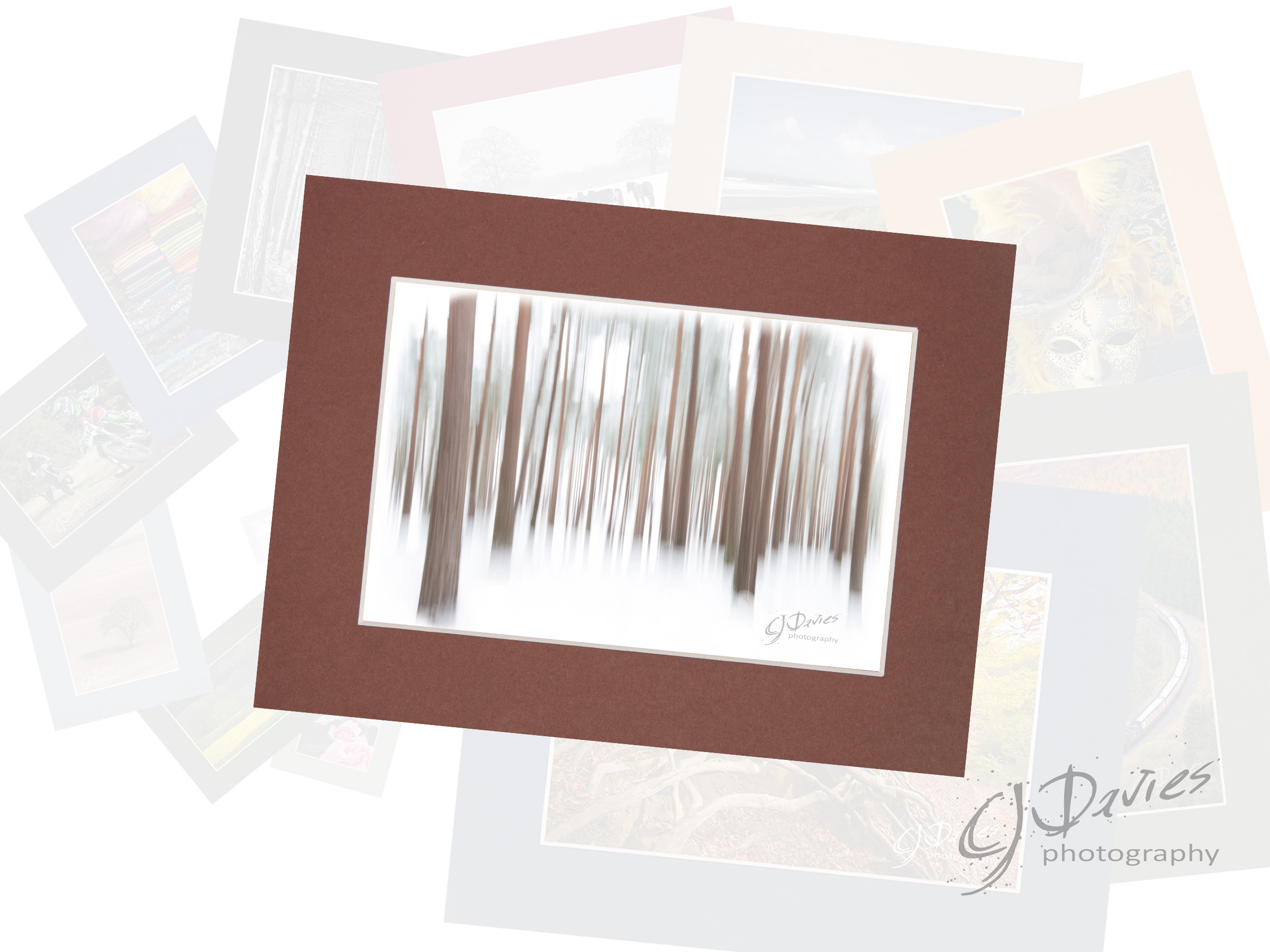 A long exposure with camera movement, all in camera, image of pines in the snow near Frensham, Surrey.