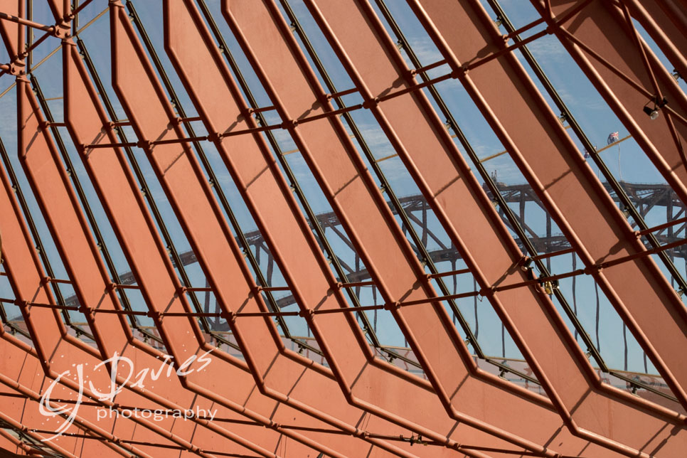 The Harbour bridge seen from inside the Opera House, Sydney, Australia.