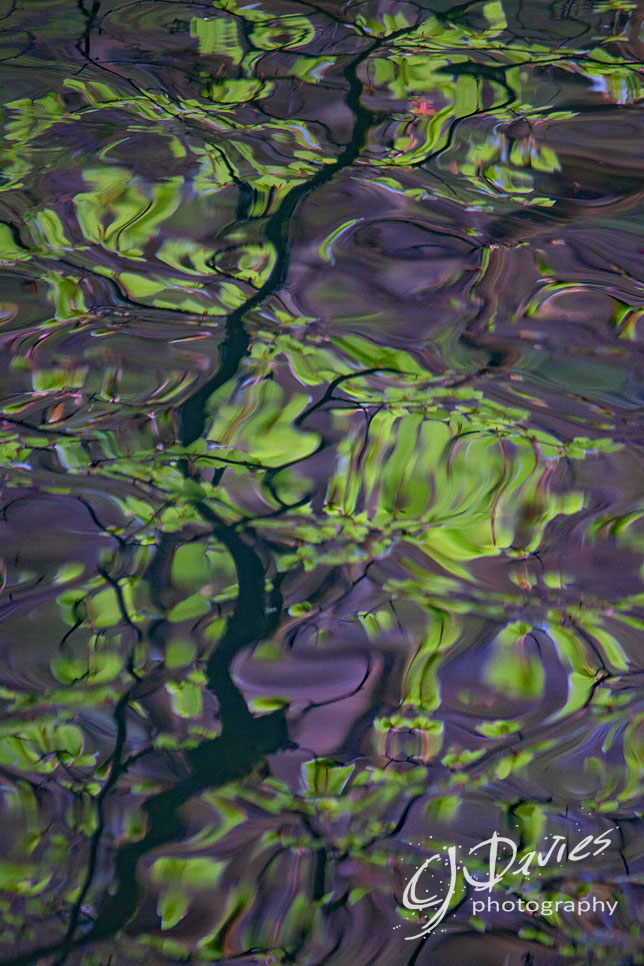 Watery view of springtime trees.