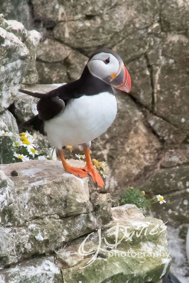 Puffin on cliffs at RSPB Bempton Cliffs, East Yorkshire.